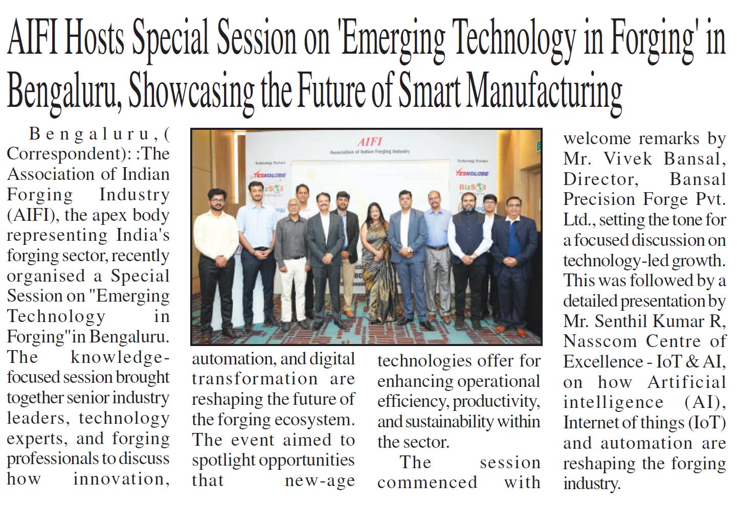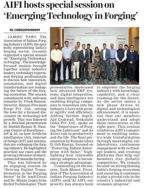 AIFI Hosts Industry Session on Emerging Forging Technologies in Bengaluru